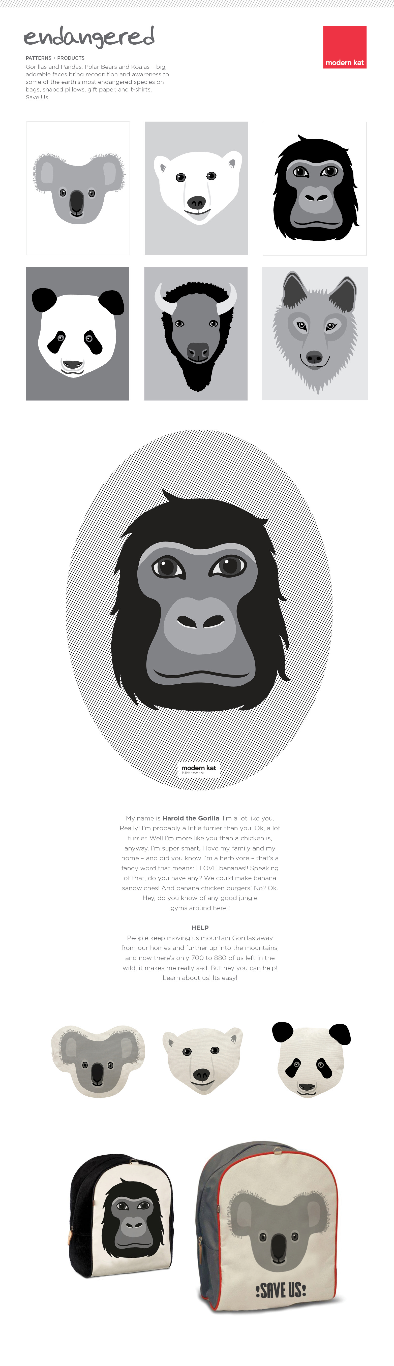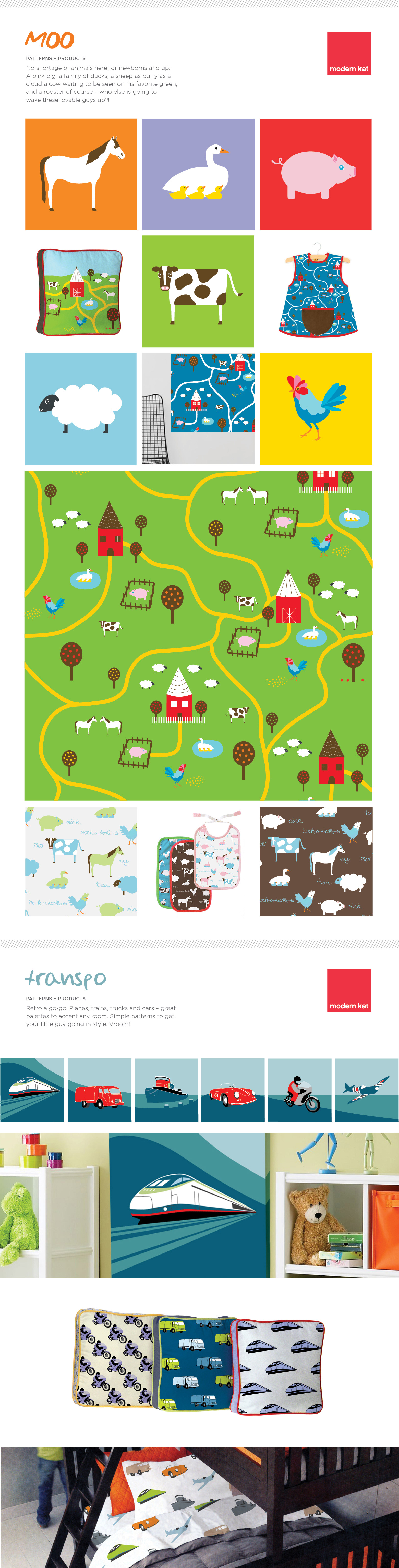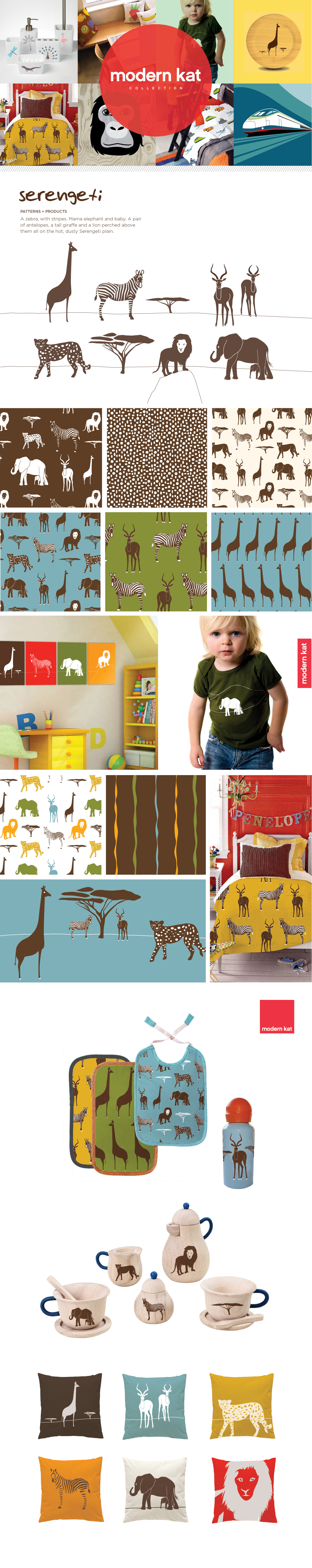 Modern Kat — graphic illustrative shapes and patterns for use on a variety of products, from fabrics, paper plates to décor and apparel. Modern Kat brings an awareness to endangered animals, healthy lifestyles, travel and environments that kids and adults can enjoy. Playful, colorful, modern kat.